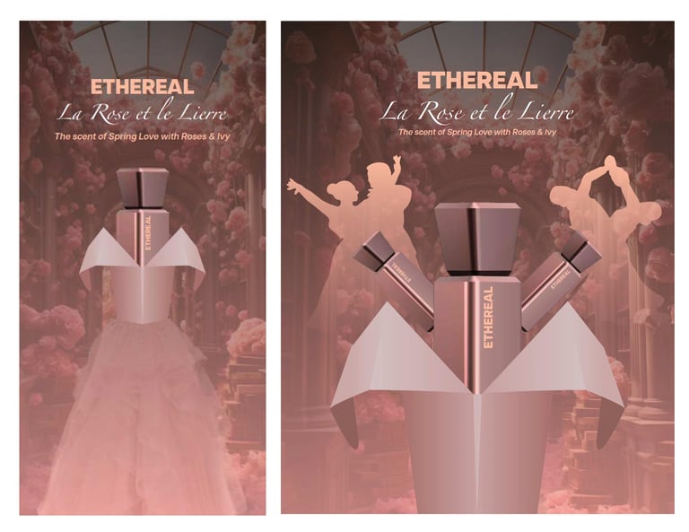 My idea of the fragrance was the ballroom scene which is a pretty common scene in many romantic dramas/books. This promotion would target females in their early twenties to early thirties, who would love to experience a ballroom scene once in their life. Or anyone who loves fairytales and the scent of roses.