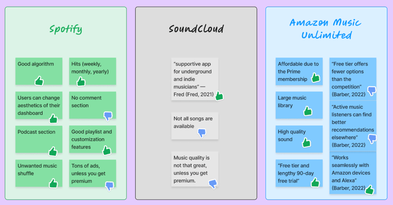 To get a better understanding of our audience, we conducted interviews. To understand the market, I decided to look into our competitors and what global reviews they have received to better understand user needs.